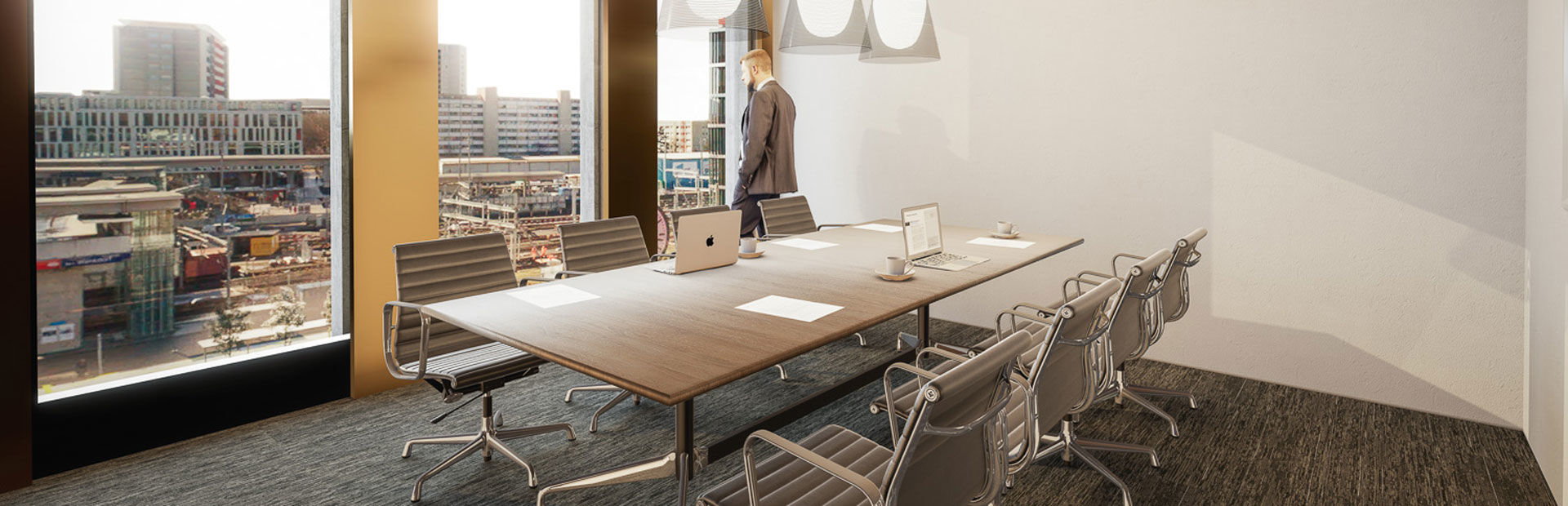 Lernen Sie Ihr neues, modernes Büro im TRIO Hochhaus kennen. Wir nehmen Sie mit auf einen virtuellen Rundgang durch lichtdurchflutete Räume mit schöner Aus- und Weitsicht.